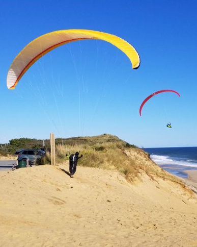 Wellfleet is the original Hang gliding and Paragliding site in the Northeast United States! First flown by German Glider experimenters in the 1920’s and then again in 1972 with Rogallo’s and Biplane Hang gliders, it is a classic seaside soaring site. Paragliding is a permitted recreational activity by the Town of Wellfleet. On soarable days, one can fly from lighthouse to lighthouse along a scenic ridge nearly 20 miles long. Hang glider friendly, the site is used by Paragliders, Mini wings and Hang gliders when the wind picks up. Your attention to safety and following the established rules will help keep Wellfleet open.
